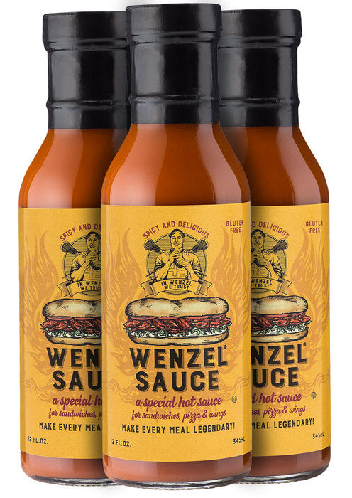 Wenzel Sauce is a spicy & tangy hot sauce with a savory butter undertone making it unique from the rest and your new mealtime and tailgating sidekick. Aged red peppers, creamy butter flavoring and the perfect mix of spices creates a special sauce you can’t live without.